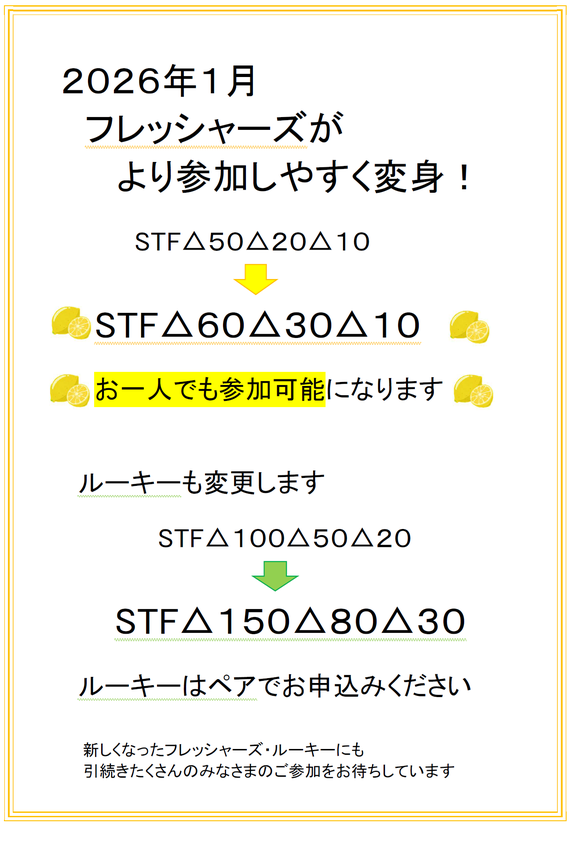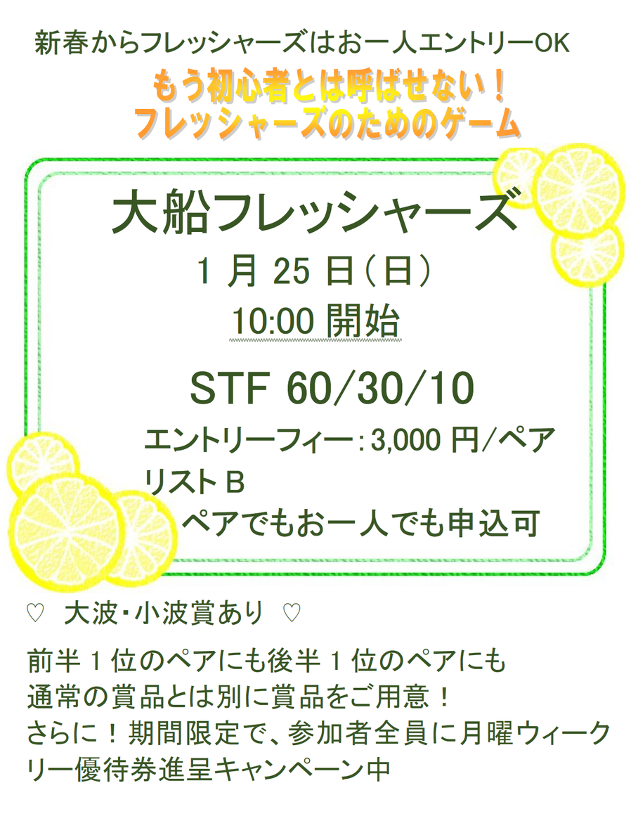 25日(日)10時 フレッシャーズ(60/30/10)一人エントリーOK